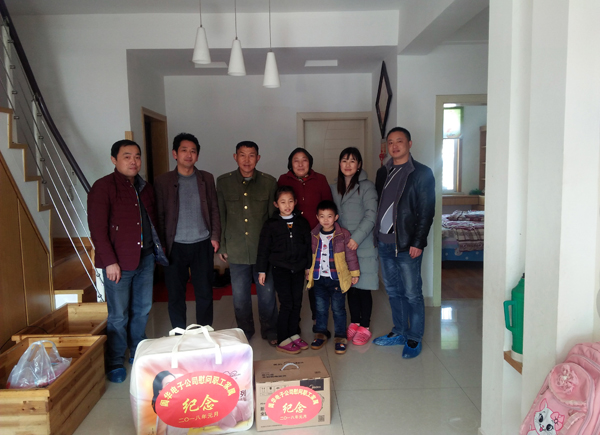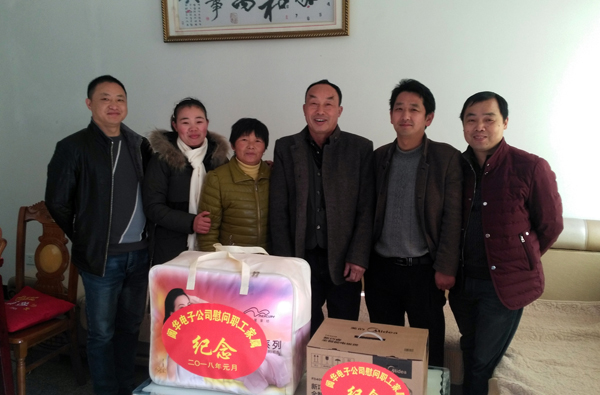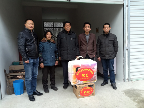 2018年1月1日,公司副總經(jīng)理、工會主席李勝利,黨支部書記、辦公室主任程梁生,生產(chǎn)廠長戴國中一行前往金工組組長吳朝陽、模塊組組長陳金霞、焊接組組長胡春梅、裝配組組長吳雪紅、包裝組組長程慧等5位組長父母親家中開展春節(jié)慰問活動。