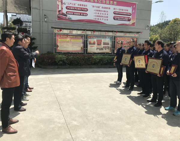 總經理凌定華為生產部、產品技術中心、產品研發(fā)中心授牌,