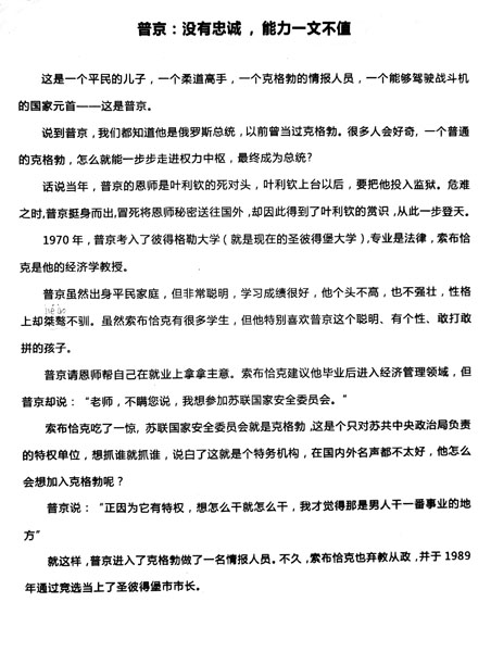 二、企業(yè)以德取人:學(xué)習(xí)普京的沒(méi)有忠誠(chéng),能力一文不值。