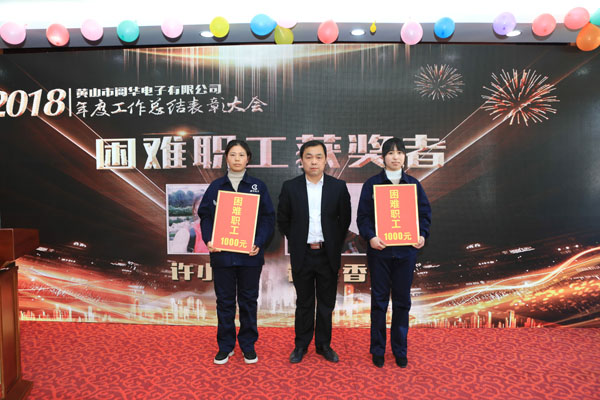 一、對獲得2018年度“產(chǎn)品市場開拓獎”獲得者、“先進(jìn)員工”、“ 黃山市最美農(nóng)民工”提名獎、”先進(jìn)管理者”進(jìn)行表彰和獎勵,并對困難職工發(fā)放了補(bǔ)助。