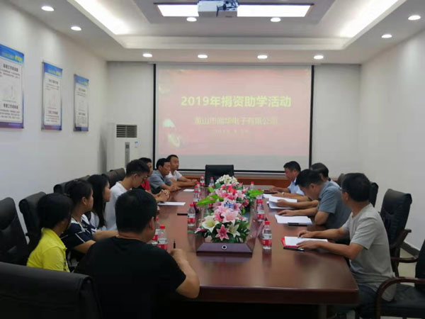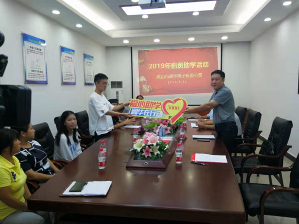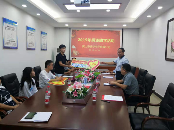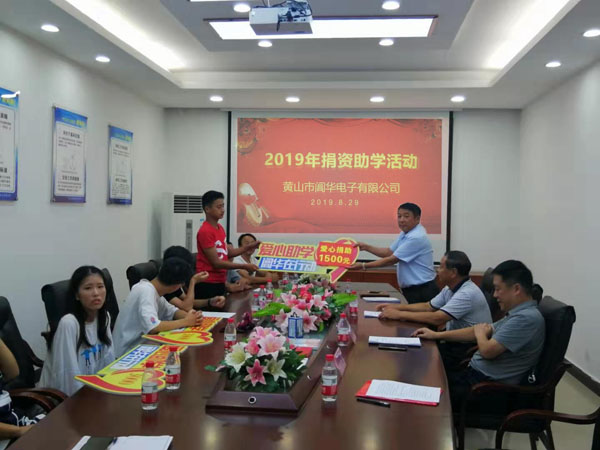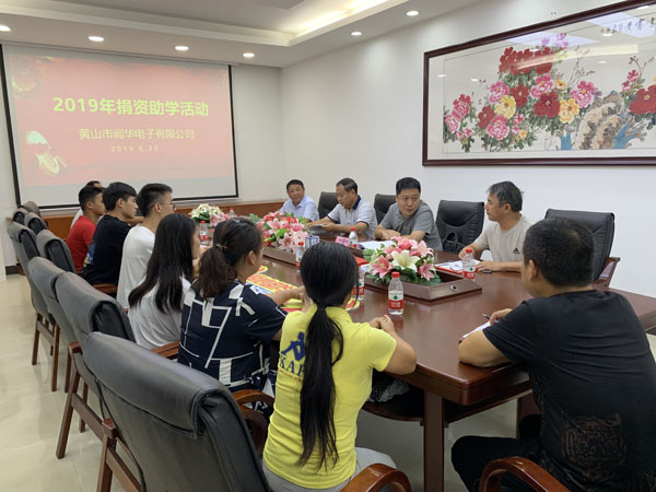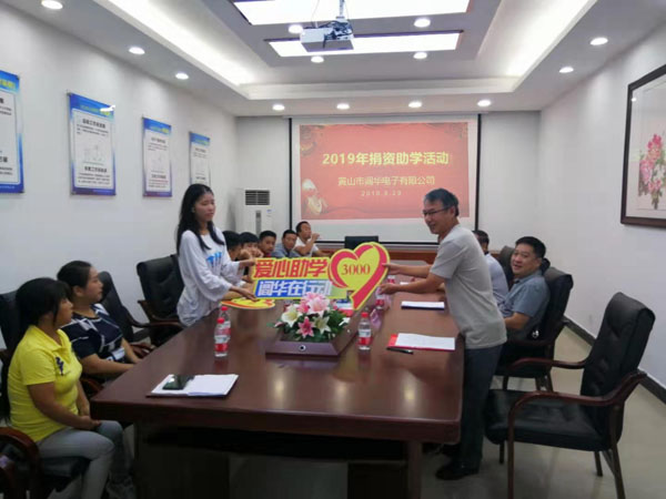 2019年8月29日閶華電子公司一年一度的捐資助學(xué)活動(dòng)在公司二樓會(huì)議室舉行??h委副書(shū)記田雨潤(rùn)、縣統(tǒng)戰(zhàn)部副部長(zhǎng)王慶祥、工商聯(lián)副主席嚴(yán)國(guó)平、公司總經(jīng)理凌定華和受助學(xué)生及家長(zhǎng)參加。