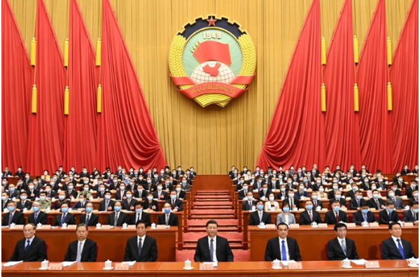 習(xí)近平、李克強(qiáng)、栗戰(zhàn)書、王滬寧、趙樂際、 韓正、王岐山等在主席臺就坐