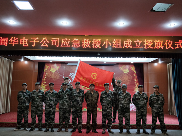 2020年8月8日,閶華電子公司應(yīng)急救援小組成立暨第一次會(huì)議及授旗儀式。