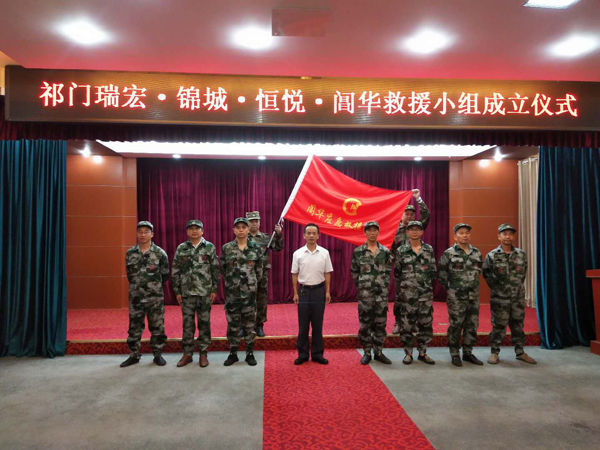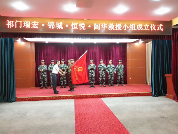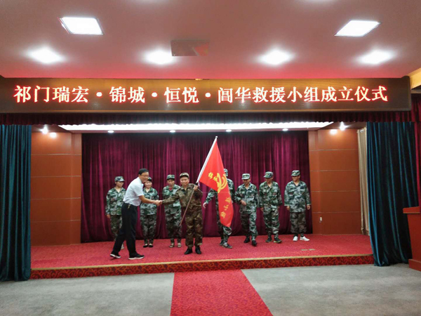 2020年8月31日,祁門縣瑞宏電器、錦城電器、恒悅電子、閶華電子四家企業(yè)應急救援小組成立及授旗儀式,在閶華電子公司二樓綜合會議室舉行。