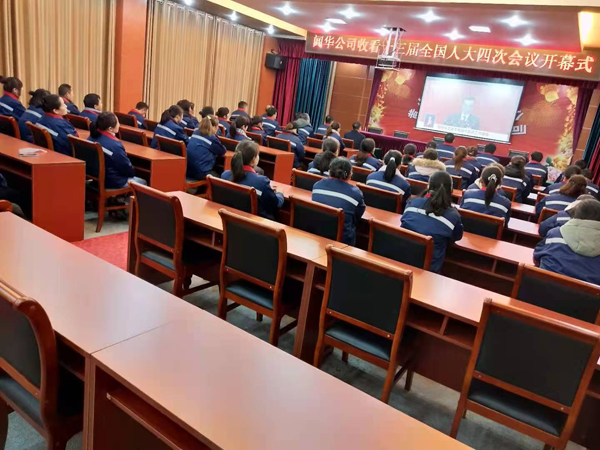 公司全體職工聆聽國務院總理李克強代表國務院向大會作政府工作報告