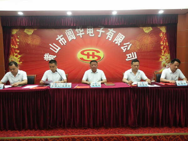 總經(jīng)理凌定華與黨支部書記洪國(guó)東、常務(wù)副總經(jīng)理汪順利、副總經(jīng)理李勝利、戴國(guó)中在主席臺(tái)就坐