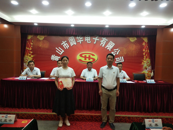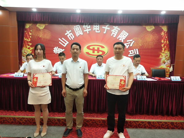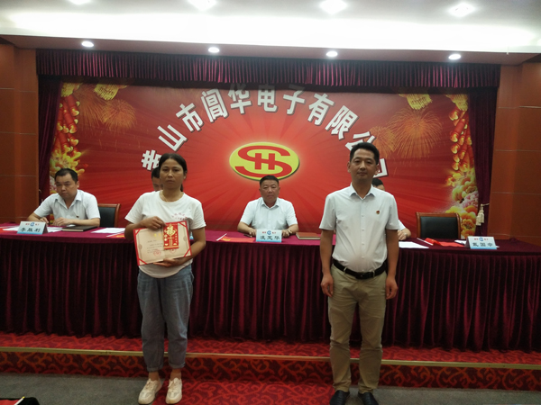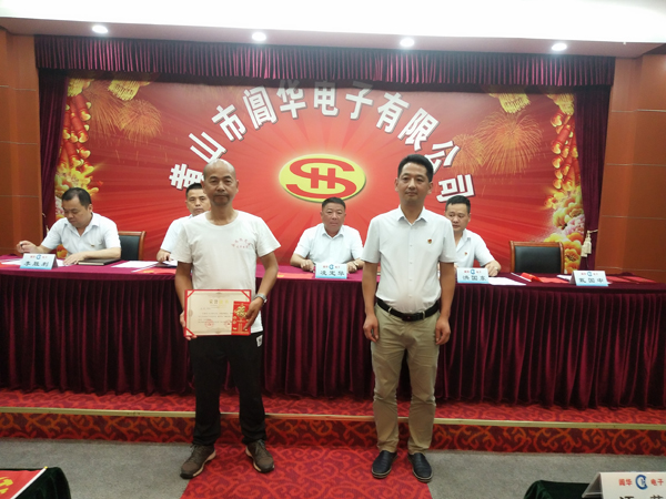 副總經(jīng)理戴國(guó)中為“模范員工”頒發(fā)榮譽(yù)證書及獎(jiǎng)金