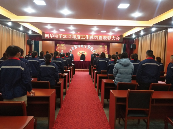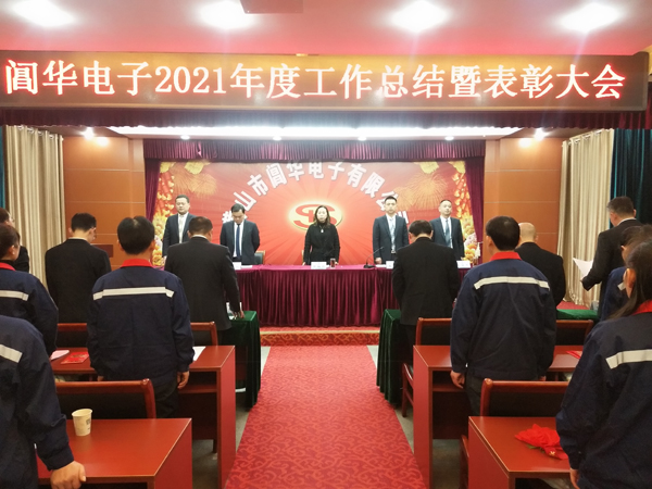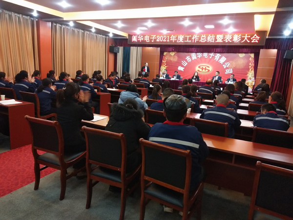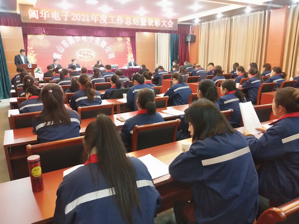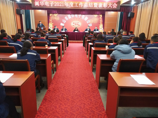 2022年1月25日下午,閶華電子公司2021年度工作總結暨表彰大會在公司二樓綜合 會議室召開,全體員工參加會議。
