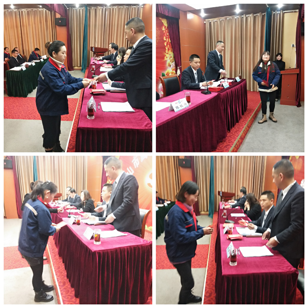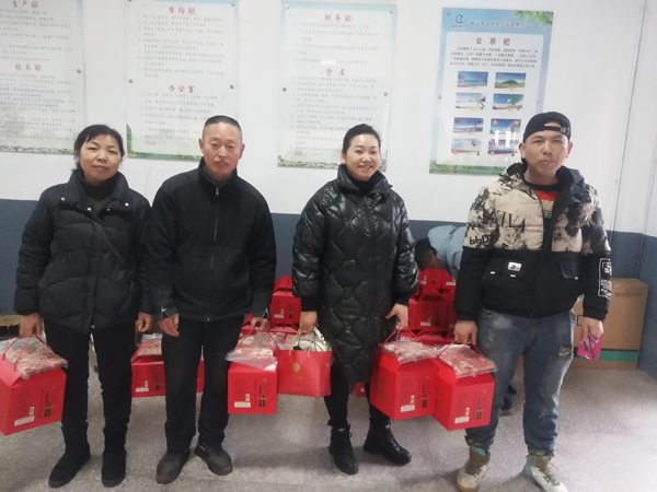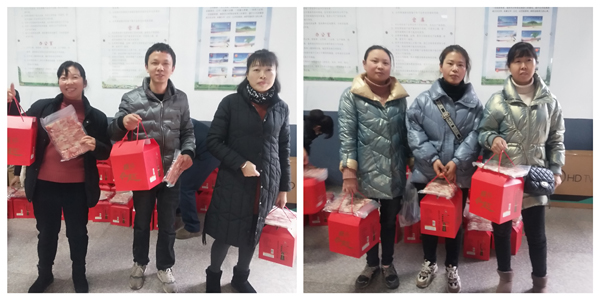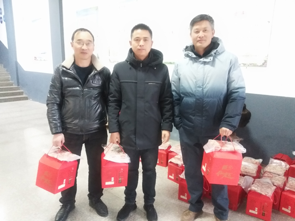 會后給所有員工派發(fā)公司準備的春節(jié)禮品。