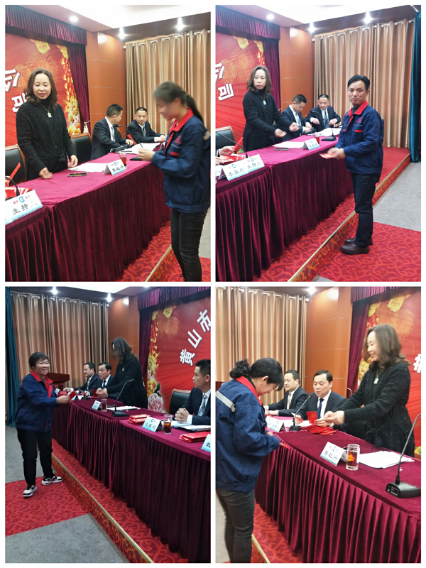 董事長陳牡丹給生產(chǎn)部員工發(fā)年終獎紅包