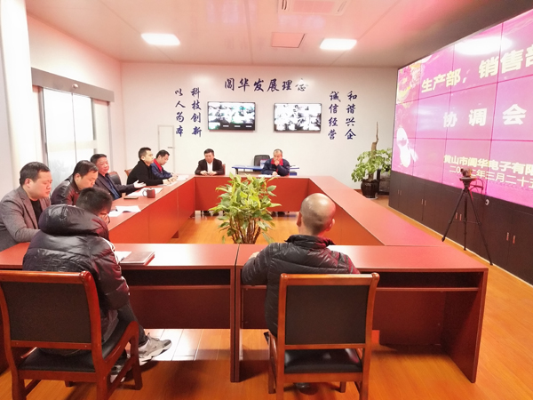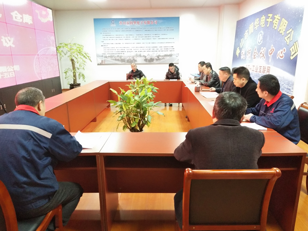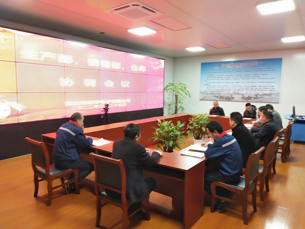 2022年3月25日上午,總經(jīng)理凌定華在大數(shù)據(jù)中心召開生產(chǎn)部、銷售部、倉庫協(xié)調(diào)會議。
