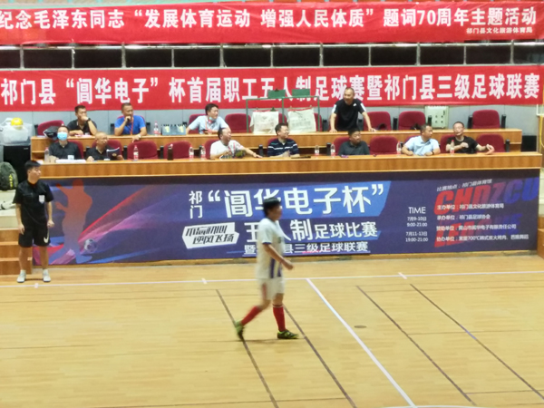2022年7月9日-7月13日在祁門縣綜合體育館舉辦由祁門縣文化旅游體育局主辦,祁門縣 足球協(xié)會承辦的祁門縣首屆“閶華電子”杯職工五人制足球賽暨安徽省省市縣三級業(yè)余足球 聯(lián)賽。