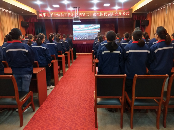 2022年10月16日上午10時(shí),閶華電子公司組織全體職工在公司二樓綜合會(huì)議室,集中 觀看中國共產(chǎn)黨第二十次全國代表大會(huì)開幕會(huì),認(rèn)真聆聽習(xí)近平總書記代表中國共產(chǎn)黨第 十九屆中央委員會(huì)所作的報(bào)告。