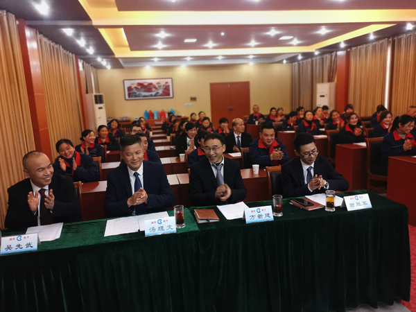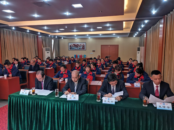 總經(jīng)理凌定華、副總經(jīng)理汪順利、洪國東、李勝利、戴國中在主席臺(tái)就座
