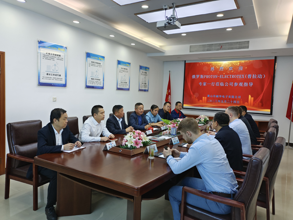 5月23日,俄羅斯PROTON-ELECTROTEX(普拉動(dòng))公司專家來公司參觀,一同前來 的有技術(shù)總工亞歷山大先生、技術(shù)基里爾先生、翻譯兼采購(gòu)員安德烈先生。