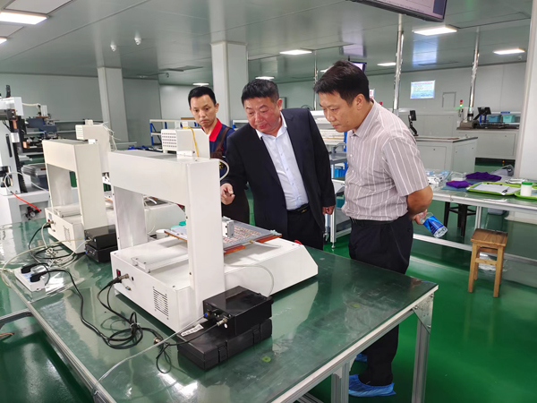 公司總經(jīng)理凌定華陪同懷寧縣三橋鎮(zhèn)湖濱村委會書記曹先平一行人參觀了生產(chǎn) 車間與大數(shù)據(jù)中心。