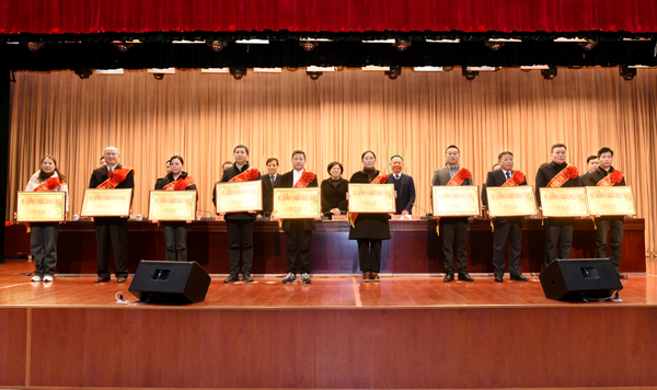 縣領(lǐng)導(dǎo)為獲表揚(yáng)的企業(yè)(右三閶華電子總經(jīng)理凌定華)頒獎