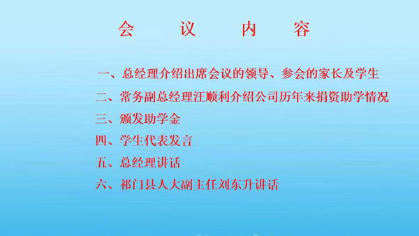 總經(jīng)理凌定華主持會(huì)議;常務(wù)副總經(jīng)理汪順利介紹了公司16年來捐資助學(xué)情況。