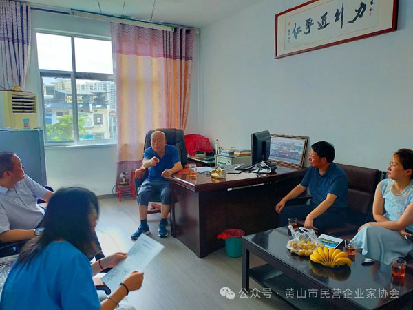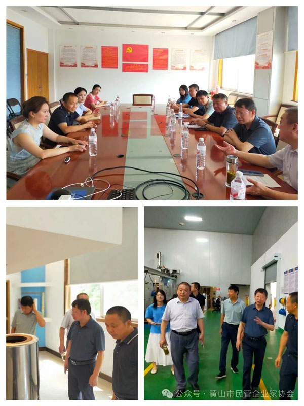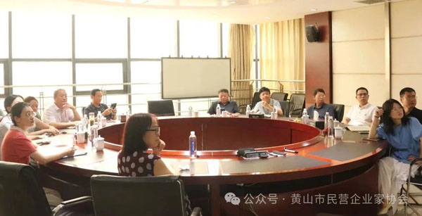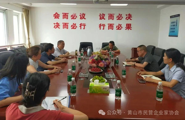 8月22日,黃山市民營企業(yè)家協(xié)會執(zhí)行會長凌定華帶隊,副會長朱繩武、蔣思清、仇巍, 郵儲銀行徽州區(qū)分行領(lǐng)導(dǎo)及秘書處一行10多人走進徽州區(qū)會員企業(yè)。