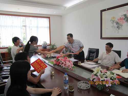 2014年8月28日上午,公司開(kāi)展2014年捐助困難大學(xué)生活動(dòng),縣人大副主任江平安、縣政協(xié)副主席程海兒、縣工商聯(lián)黨組書(shū)記方建平及公司總經(jīng)理凌定華參加本次活動(dòng),今年公司在原有捐助3名困難大學(xué)生的基礎(chǔ)上,又新增捐助了1名困難大學(xué)生每年3000元,共計(jì)12000元的大學(xué)學(xué)費(fèi)。原捐助的一名困難大學(xué)生--李暉,今年已順利完成四年大學(xué)學(xué)業(yè),找到了自己理想的工作。公司決定今后將繼續(xù)捐助困難學(xué)子,幫他們圓大學(xué)夢(mèng)。