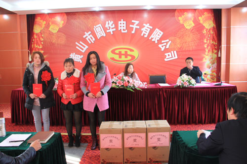 2015年1月9下午,閶華電子公司2014年年終工作總結暨表彰大會在公司二樓會議室召開,全體員工參加會議,會上表彰了一年來為公司做出突出貢獻的個人,并給困難職工發(fā)放了困難補助,公司財務主管汪萍作財務總結報告,工會主席、副總經理李勝利作一年來工會工作情況報告。最后,公司總經理凌定華就公司全年來在企業(yè)管理、新產品研發(fā)、誠信經營等方面工作作了全面總結,并制定了2015年新的工作目標及任務。