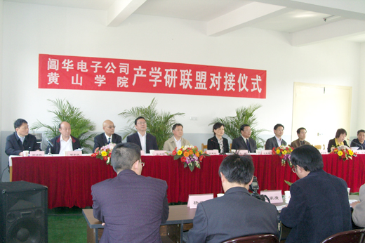 2008年11月4日上午,閶華電子公司與黃山學院“產、學、研”聯(lián)盟對接儀式在公司三樓會議室舉行,縣委書記張敏、縣科技局等縣直有關部門負責人參加對接儀式。公司總經理凌定華向參會的各位領導匯報了公司今年來的發(fā)展情況,并與黃山學院院長王國平簽訂了“產、學、研”合作協(xié)議,公司現(xiàn)場聘請了黃山學院陳劍等4名教授作為公司的技術顧問,會后還參觀了公司生產車間。