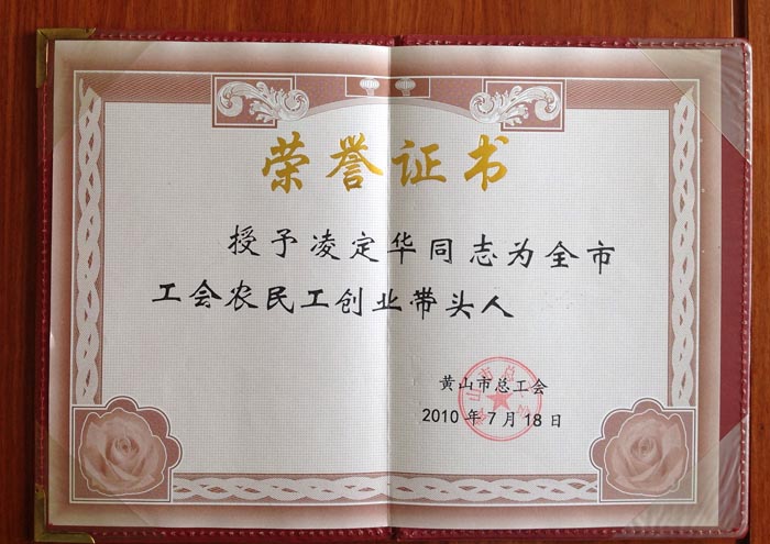 2010年7月18日被授予黃山市“工會(huì)農(nóng)民工創(chuàng)業(yè)帶頭人”稱(chēng)號(hào)。