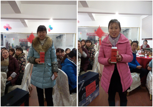 黃定芳、鄭秀芽在公司年終宴會活動中喜中二等獎(手機(jī)一部)