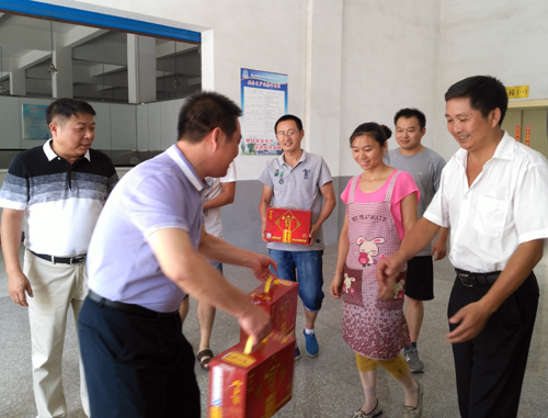 2016年8月10日,縣委常委、常務副縣長唐永春、縣總工會主席程毅風一行來公司看望慰問一線職工,為職工送來了縣委縣政府的一份關愛和“清涼”。
