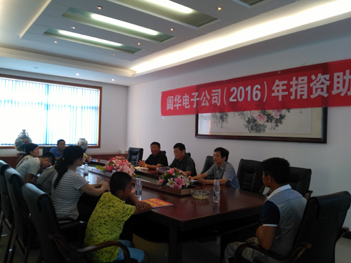 2016年8月24日閶華電子公司一年一度的捐資助學(xué)活動(dòng)在公司二樓會(huì)議室舉行。縣政協(xié)主席王震、縣委宣傳部副部長(zhǎng)徐毅勝、縣經(jīng)濟(jì)開(kāi)發(fā)區(qū)主任黃五金以及公司總經(jīng)理凌定華和5名受捐的大學(xué)生,小學(xué)生參加。