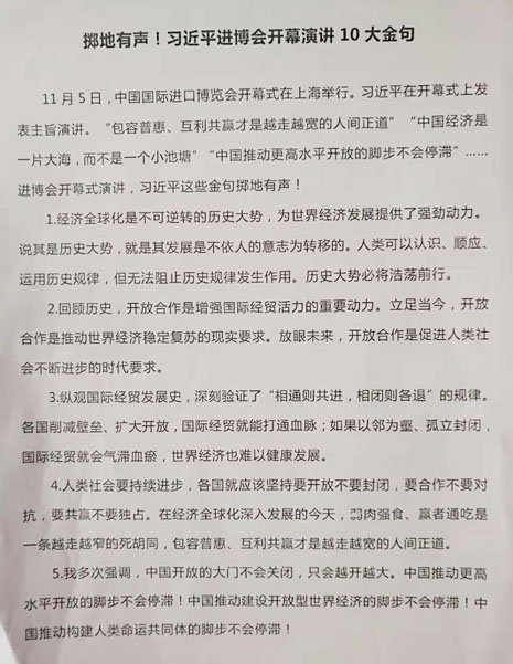 二、習(xí)近平總書記在首屆進口博覽會開幕式上講話(十大金句)。