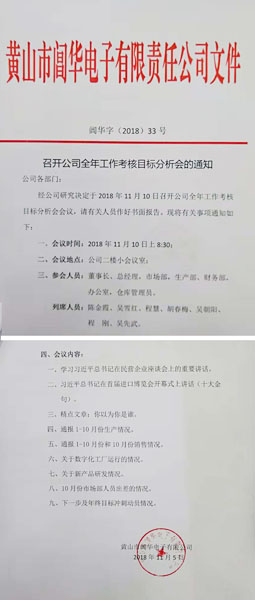 2018年11月10日在公司二樓會議室召開全年工作考核目標(biāo)分析會會議。