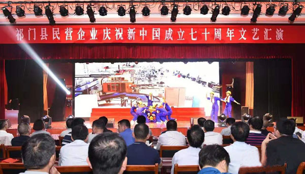 由縣委組織部、縣委統(tǒng)戰(zhàn)部主辦,縣委非公工委、縣工商聯(lián)承辦的祁門縣民營(yíng)企業(yè)慶祝新中國(guó)成立七十周年文藝匯演,9月26日晚在縣委黨校大報(bào)告廳舉行??h委書(shū)記汪國(guó)際,杭州市上城區(qū)副區(qū)長(zhǎng)孟曉斌,縣政協(xié)主席朱生貴,縣委副書(shū)記田雨潤(rùn)等各位領(lǐng)導(dǎo)及各企業(yè)的干部職工觀看了演出。