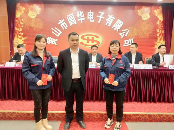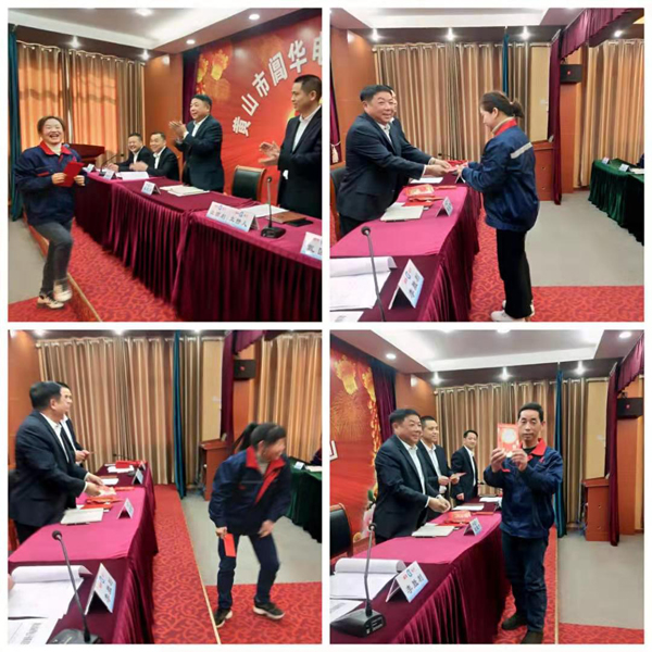 總經(jīng)理凌定華給生產(chǎn)部員工發(fā)年終獎紅包