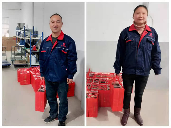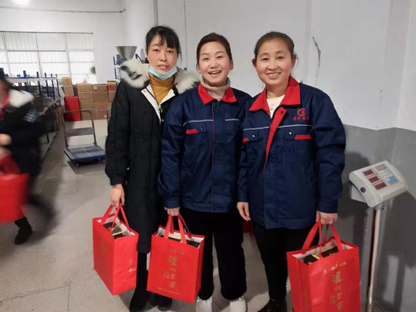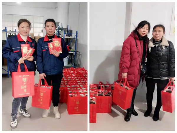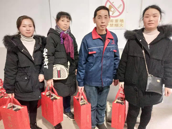會后給所有員工派發(fā)公司準(zhǔn)備的春節(jié)禮品。