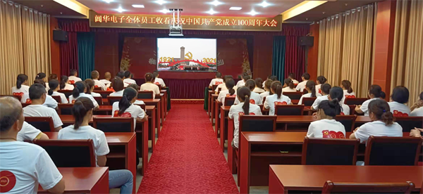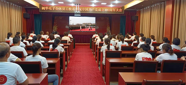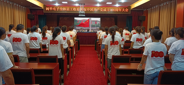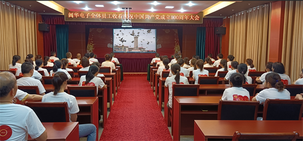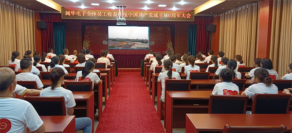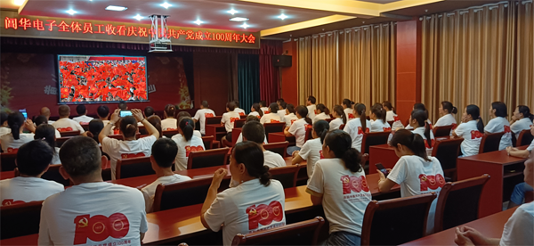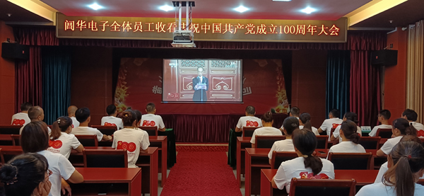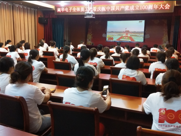 閶華電子公司組織全體員工在二樓綜合會議室收看慶祝中國共產(chǎn)黨成立100周年大會直播。