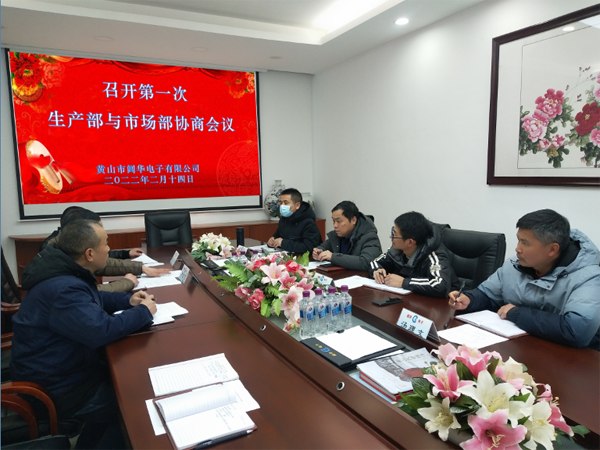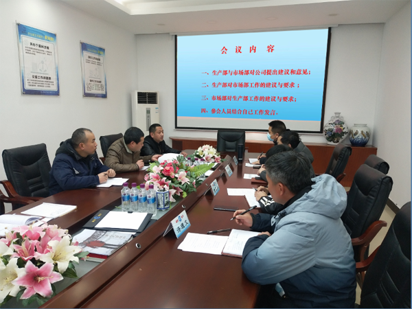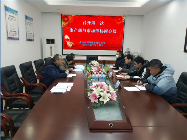 2022年2月14日下午,副總經(jīng)理汪順利、洪國(guó)東聯(lián)合主持召開2022年第一次 生產(chǎn)部與市場(chǎng)部協(xié)商會(huì)議。