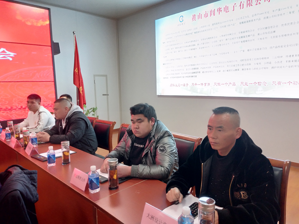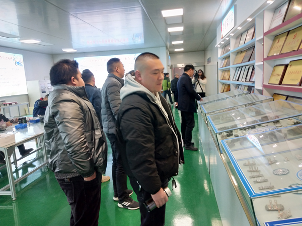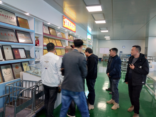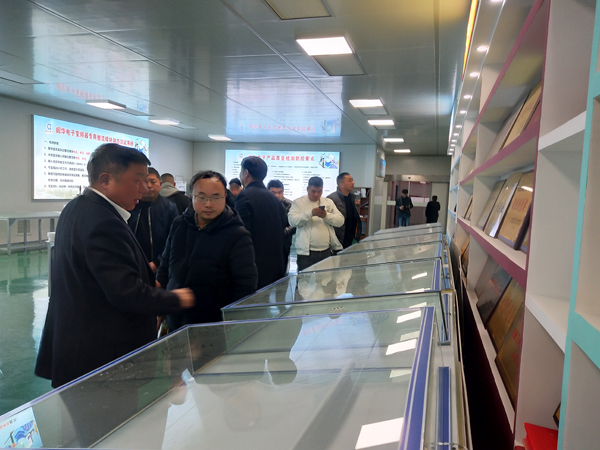 閶華電子公司總經(jīng)理凌定華帶領(lǐng)大家參觀企業(yè)歷代產(chǎn)品。
