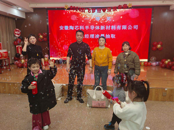 陶芯科公司總經(jīng)理凌晨抽取一等獎名單與獲獎員工合影
