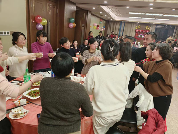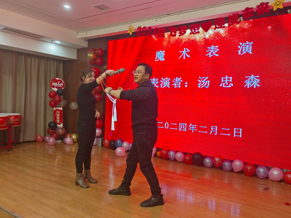 為了把晚會辦得有聲有色,特地邀請黃山市旗袍文化藝術(shù)研究會?徽州美手鼓隊(duì)活躍晚宴 氣氛,員工與現(xiàn)場參會人員也紛紛上臺表演樂器獨(dú)奏、魔術(shù)表演、唱歌獻(xiàn)舞等。