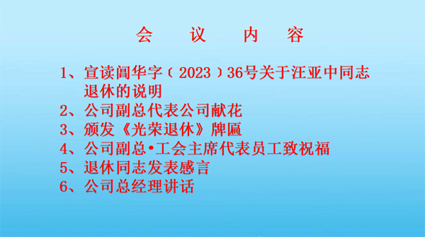 宣讀閶華字﹝2023﹞36號關(guān)于汪亞中同志退休的說明