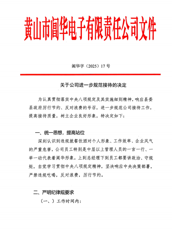 三、宣布《關(guān)于公司進(jìn)一步正規(guī)接待的決定》