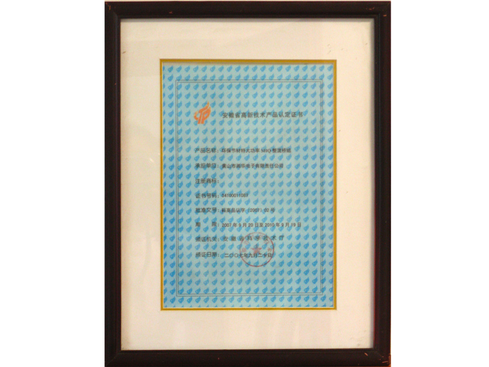安徽省高新技術(shù)產(chǎn)品認(rèn)定證書