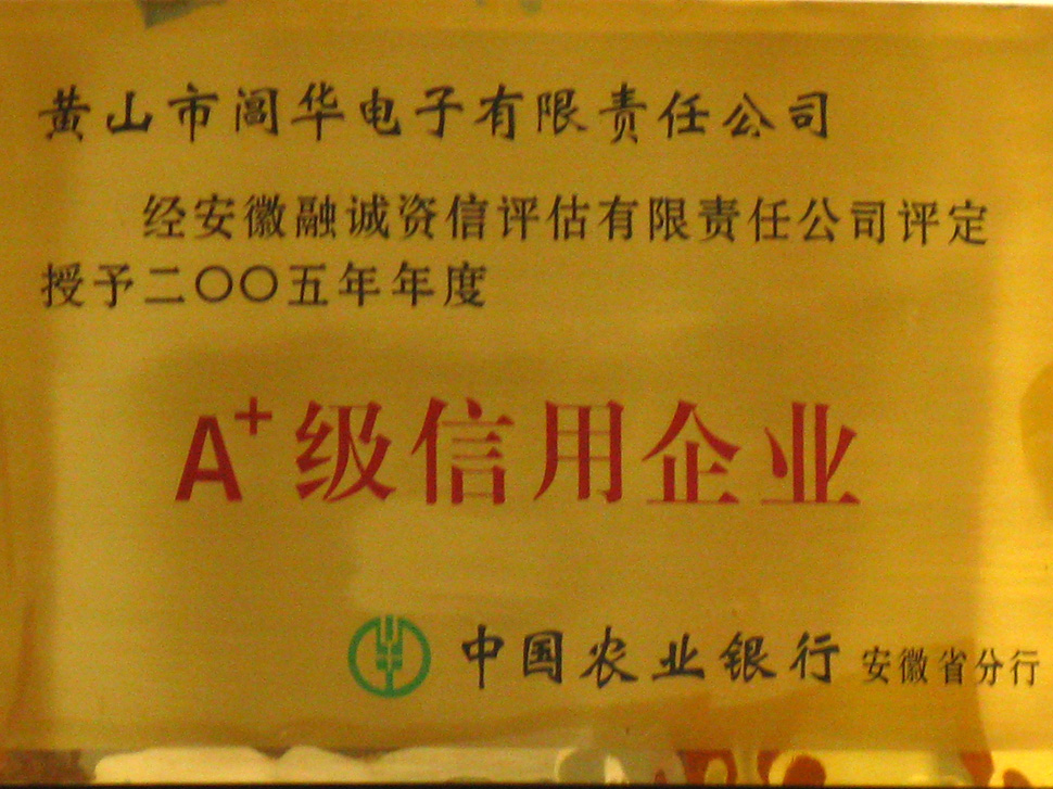 安徽省2004-005年度農(nóng)業(yè)銀行A+級信用企業(yè)