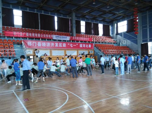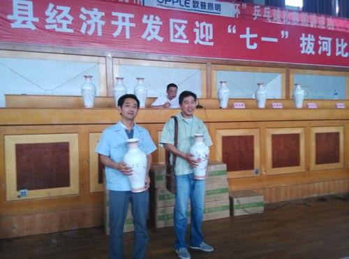 2014年7月1日縣開發(fā)區(qū)迎“七.一”拔河比賽在縣體育館舉行,通過近半天的激烈比拼,我公司代表團取得了三等獎的成績。