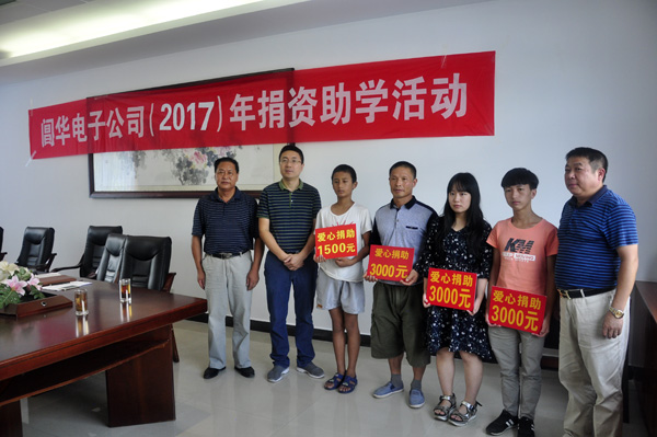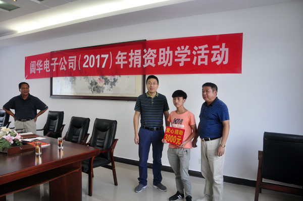 閶華電子公司自2010年開(kāi)展捐資助學(xué)活動(dòng)以來(lái),每年增加一名困難大學(xué)生的助學(xué)捐資,到今年,共捐資了6名大學(xué)生和10名中小學(xué)生,累計(jì)捐款承諾資金近10余萬(wàn)元。捐助大學(xué)生中其中有3名已走向工作崗位。為更好地幫助困難學(xué)子完成學(xué)業(yè),這項(xiàng)活動(dòng)將每年如期舉行。